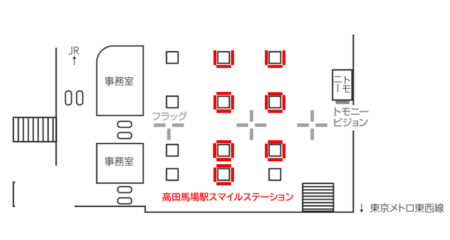 駅看板(西武新宿線上りホーム・西武新宿線下りホーム・改札内コンコース)、ポスターボード(ホーム上・改札内コンコース)、スマイルステーションビジョン、トモニービジョン、高田馬場フラッグ、高田馬場ビックボードなどの広告設備がございます。