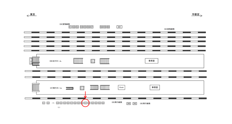 ○南行線側№57 線路前(JR京浜東北線 赤羽・上野・東京・横浜方面) |