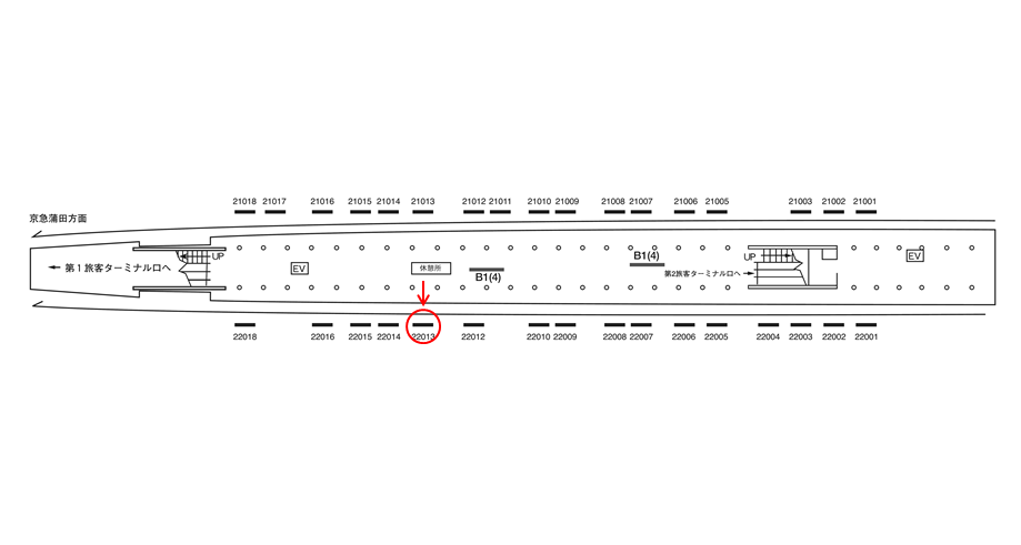 京急 羽田空港第1・第2ターミナル駅の京急線ホームにある駅看板です。