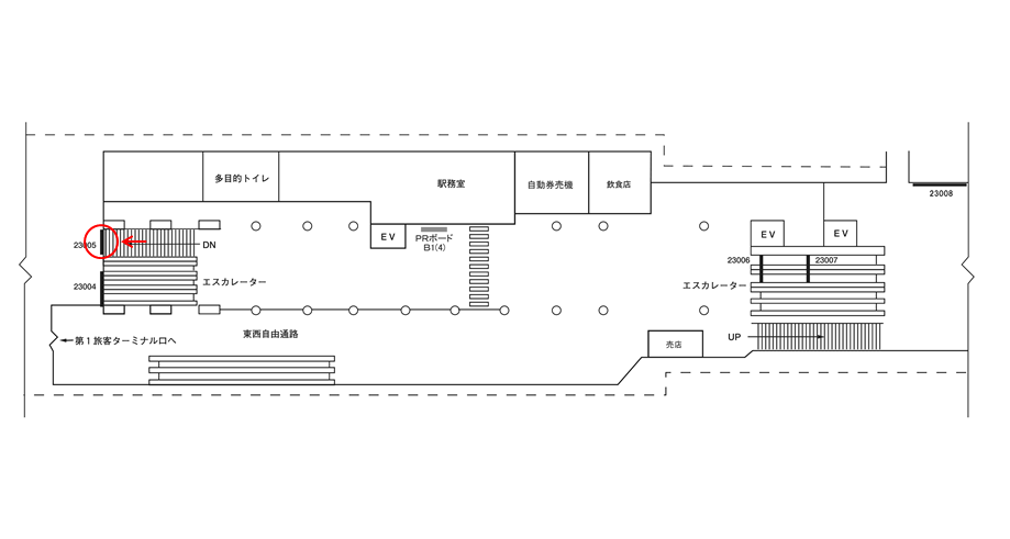 駅構内にあるこの駅看板はプラットホームへ向かう方、つまり「これから電車に乗る方」に見てもらえます。これから鉄道を利用するタイミングで広告に接触します。移動中に見てもらえる駅構内の駅看板は、羽田空港第1・第2ターミナル駅の周辺にある店舗施設の紹介や道案内に利用されています。特に駅の出口付近にある駅看板は、店舗までの距離が近く案内看板に適しています。
