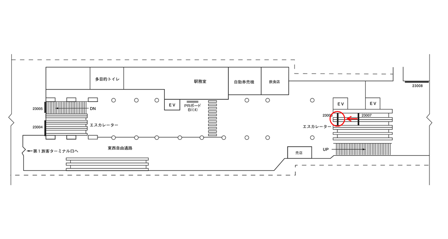 駅構内にあるこの駅看板は改札へ向かう方、つまり「これから電車に乗る方」に見てもらえます。これから鉄道を利用するタイミングで広告に接触します。移動中に見てもらえる駅構内の駅看板は、羽田空港第1・第2ターミナル駅の周辺にある店舗施設の紹介や道案内に利用されています。特に駅の出口付近にある駅看板は、店舗までの距離が近く案内看板に適しています。