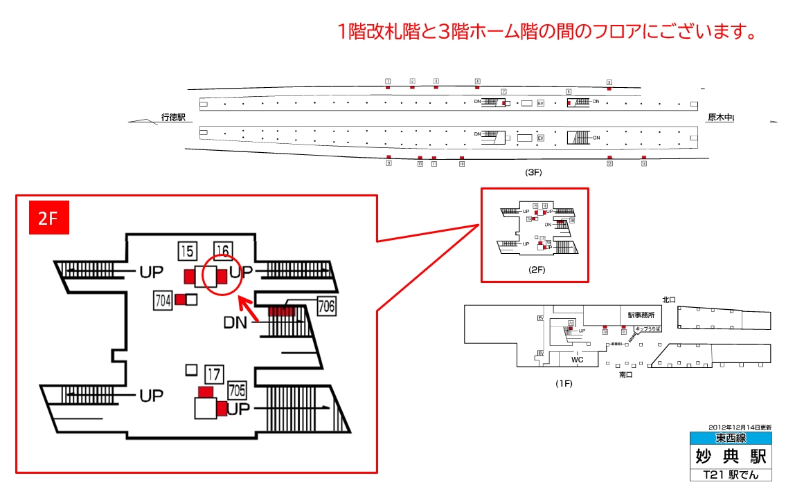 1階の改札階と3階のホーム階の中間に位置しているため、乗車前、降車後など様々なシーンで広告との接触が期待できます。