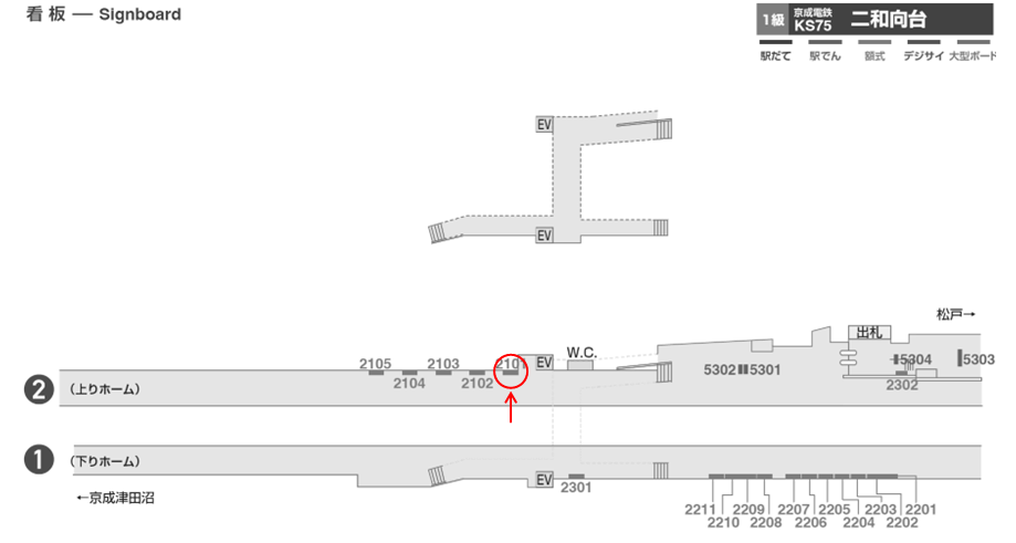 京成二和向台駅上り線側(松戸方面)ホーム上壁面にある広告看板です。