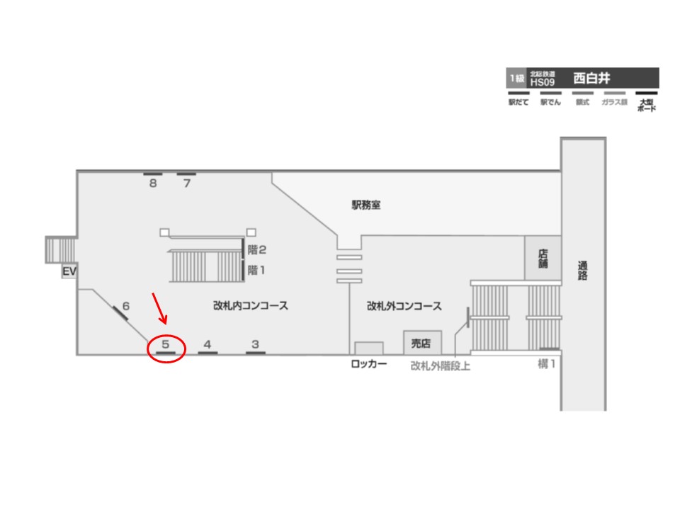 北総線西白井駅、改札内の電飾看板です。列車ホームから自動改札へ向かう際に見えます。