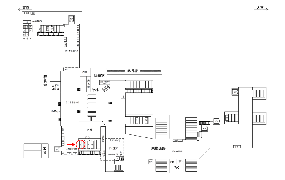 ○本屋橋上№30 改札内コンコース(ホーム階段正面 JR京浜東北線上りホーム) |