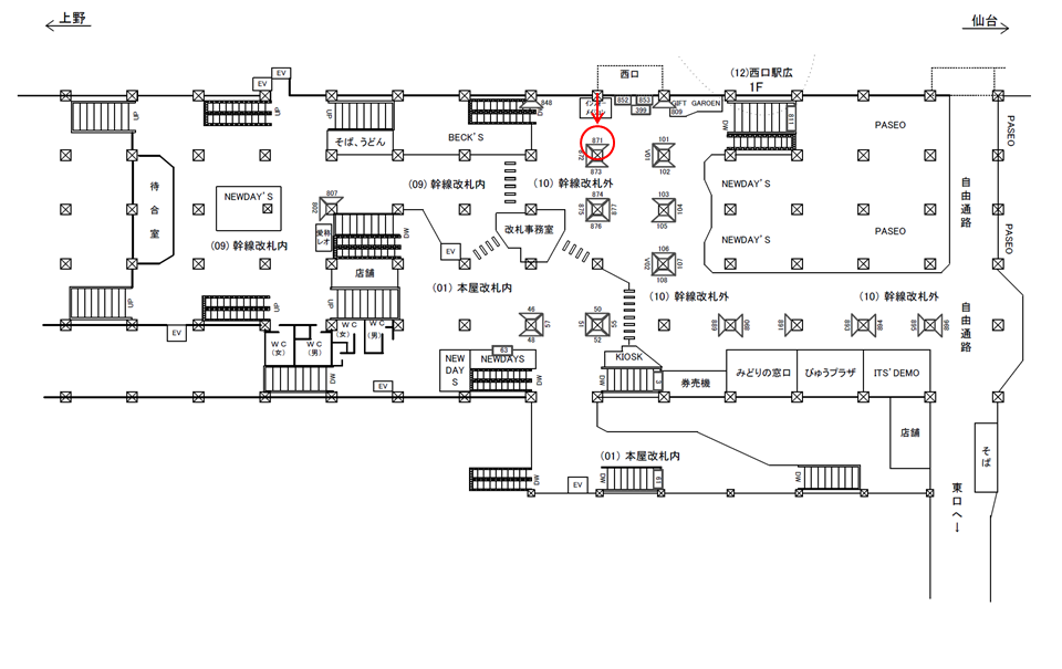 「JR宇都宮駅 幹線改札外 №871」は改札外の柱面に設置された電飾タイプの広告看板です。西口出口に近いエリアにある柱の看板で、宇都宮駅構内を行き来される方にご覧頂けます。