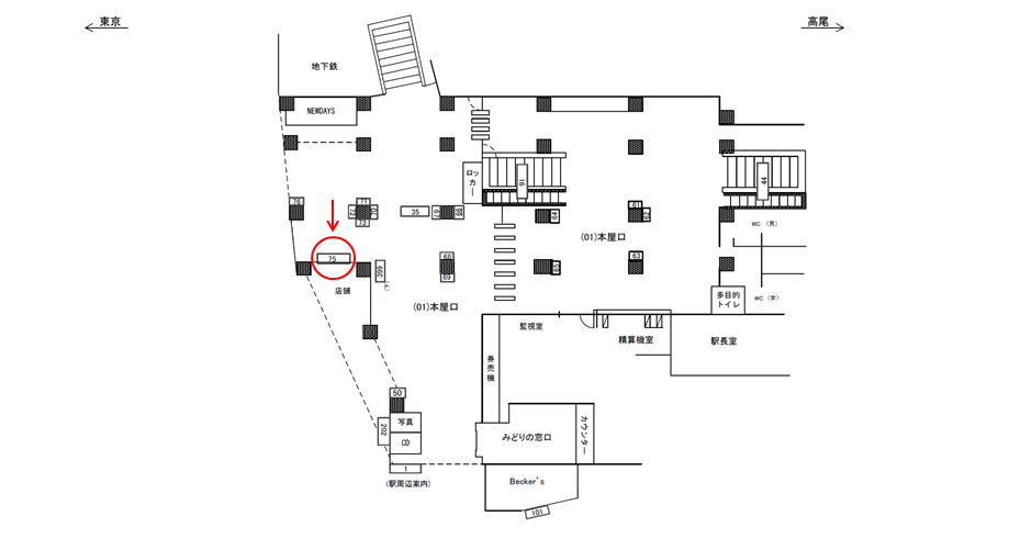 ■ 駅看板「JR 飯田橋駅 本屋口№75」の広告ロケーション