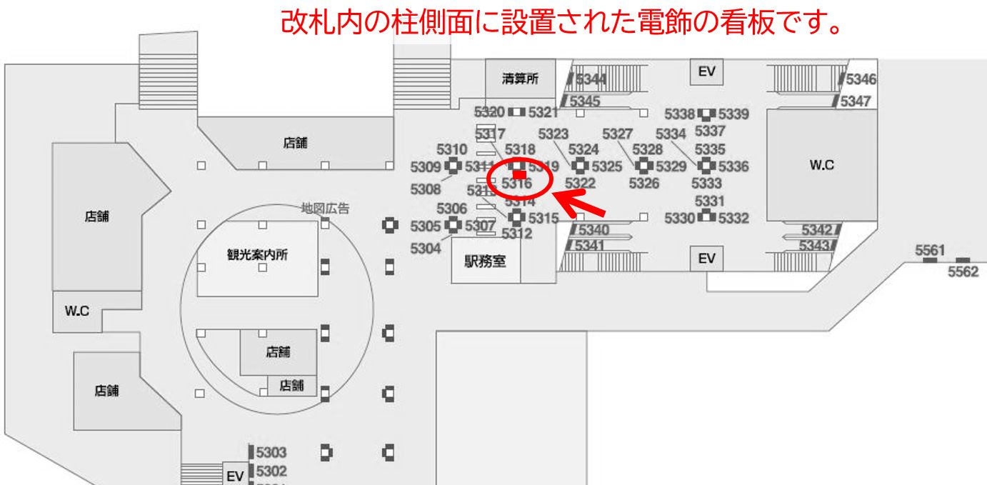 №5316は改札手前の柱の側面に設置された電飾タイプの看板です。