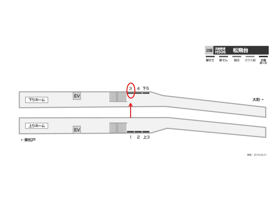 北総線松飛台駅の下りホーム(東松戸・新鎌ヶ谷・印旛日本医大方面)の電飾看板です。下りホームで電車を待つ際に見えます。ホーム階段近くの好立地の看板広告です。