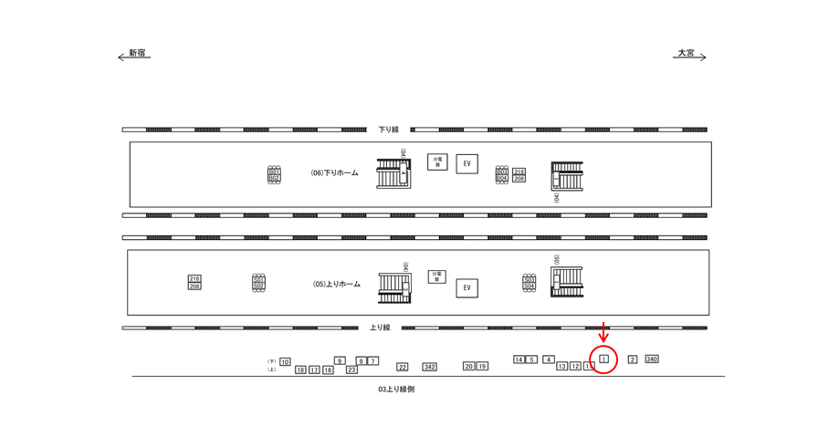 ○上り線側№17 線路前(JR埼京線 池袋・新宿・大崎・りんかい線方面) |