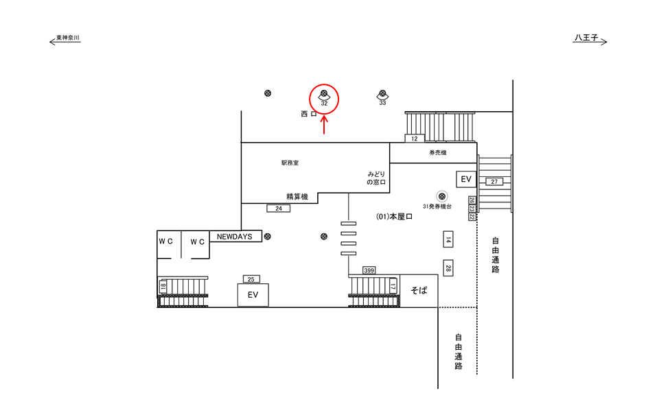 ■駅看板「JR 鴨居駅 本屋口№32」の広告ロケーション