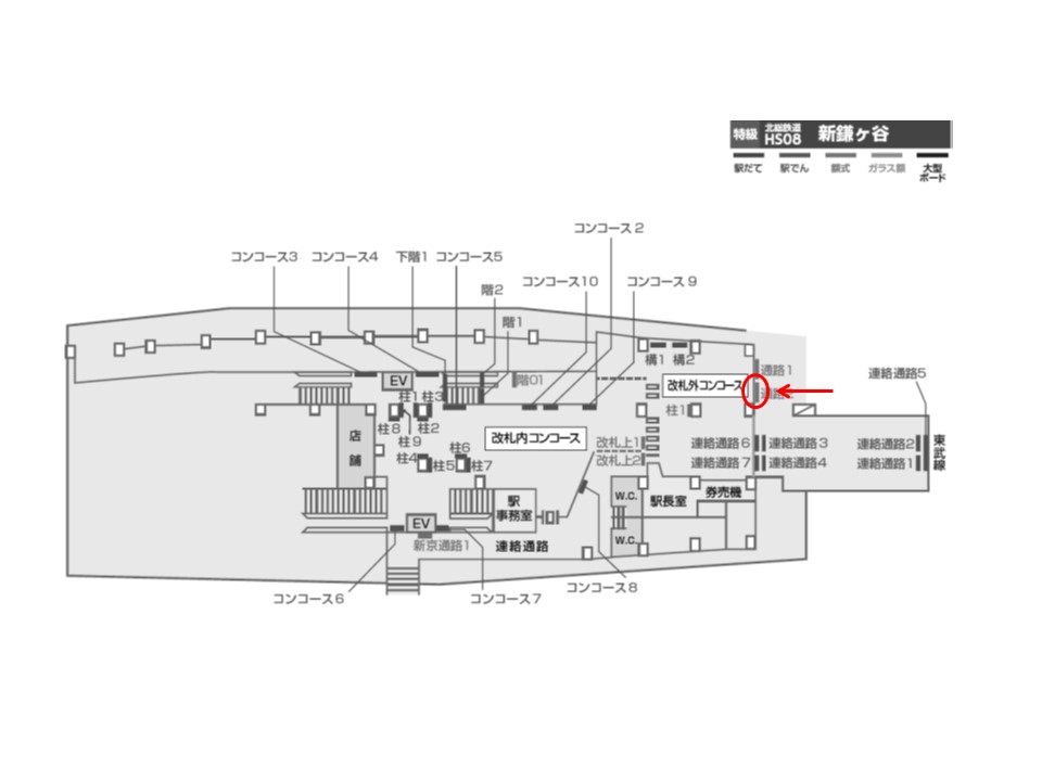 北総線新鎌ヶ谷駅の改札外、北口方面(改札を出て左側)の通路に設置されている看板です。新鎌ヶ谷駅の北口を出入りする方に毎日PR可能です。