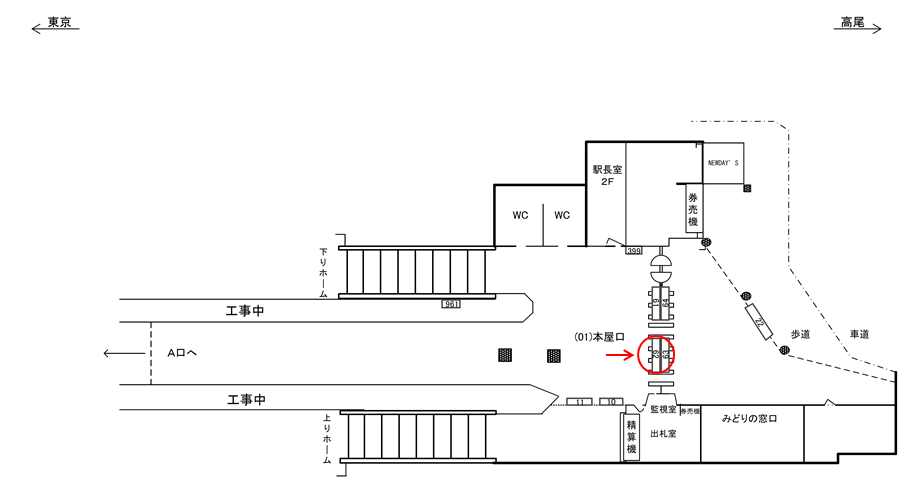 ○下り線側№101 線路前(JR中央線快速 新宿・立川・八王子・高尾方面) |