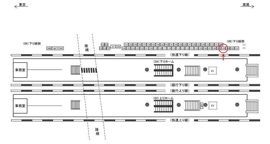 ○下り線側№101 線路前(JR中央線快速 新宿・立川・八王子・高尾方面) |
