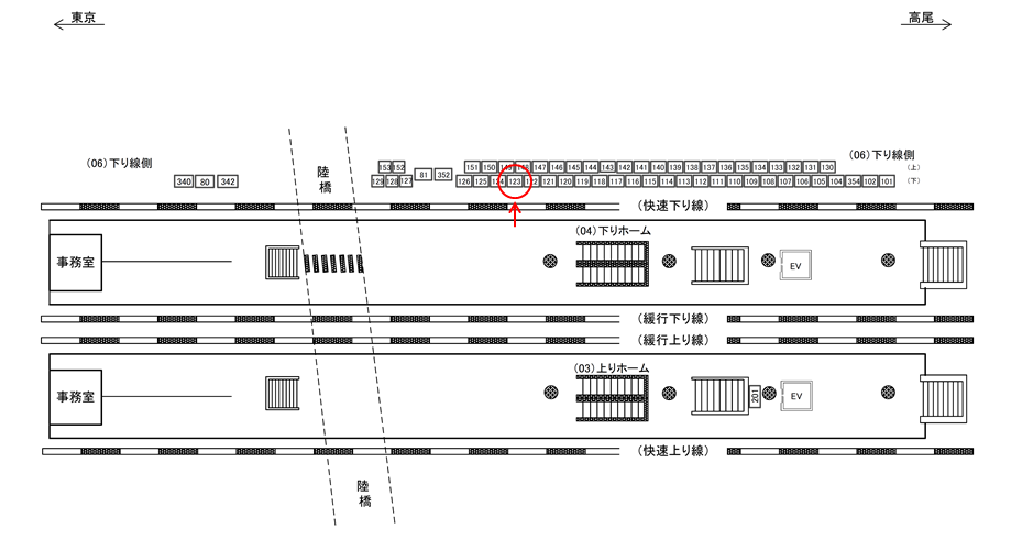 ○下り線側№116 線路前(JR中央線快速 新宿・立川・八王子・高尾方面) |