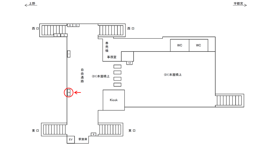 改札の外通路にある広告看板です。改札を出た左正面に位置しており、土呂駅を下車する方を対象とした広告です。
