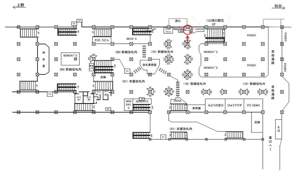 駅看板「JR 宇都宮駅 幹線改札外№809」
