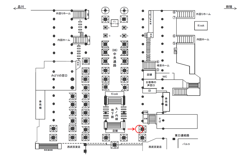 ○中央通路№136 改札外コンコース(中央通路 メトロ丸ノ内線改札付近 柱) |