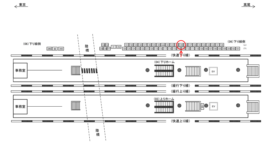 ○下り線側№132 線路前(JR中央線快速 新宿・立川・八王子・高尾方面) |