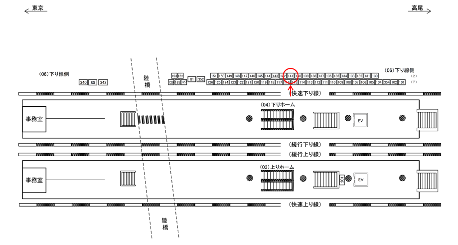 線路前(JR中央線快速、新宿・立川・八王子・高尾方面)