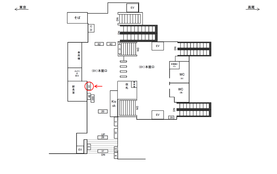 改札口は1箇所、出口は北口と南口の2箇所がございます。