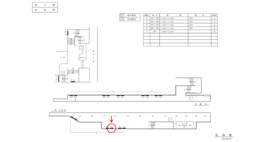 主に当ホームを利用する方や、反対側のホームにて乗車を待つ方々の視界にも留まる位置にあります。企業広告や店舗施設紹介、サービス商品周知に適したロケーションです。