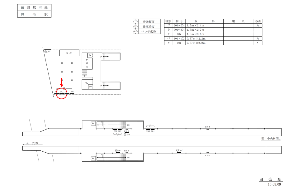 東急 田園都市線 田奈駅、駅前スペースにある建植看板です。