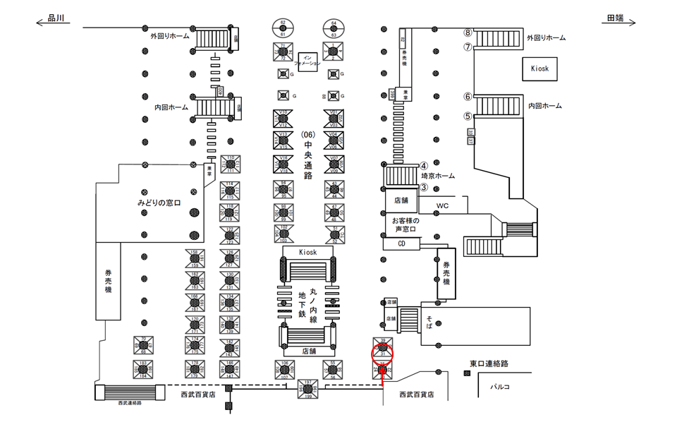 ○中央通路№174 改札外コンコース(中央通路 西武東口方面 柱) |