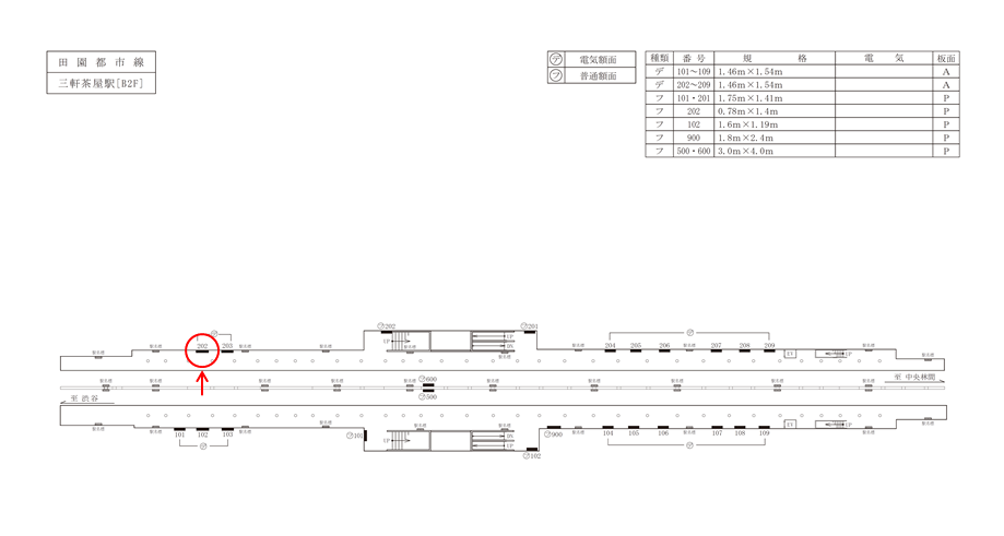 「東急 田園都市線 三軒茶屋駅 電気額面№202」は、中央林間方面ホーム上の壁面に設置された広告看板です。中央林間方面の電車を待つ方やホーム上を移動する方にご覧いただけます。