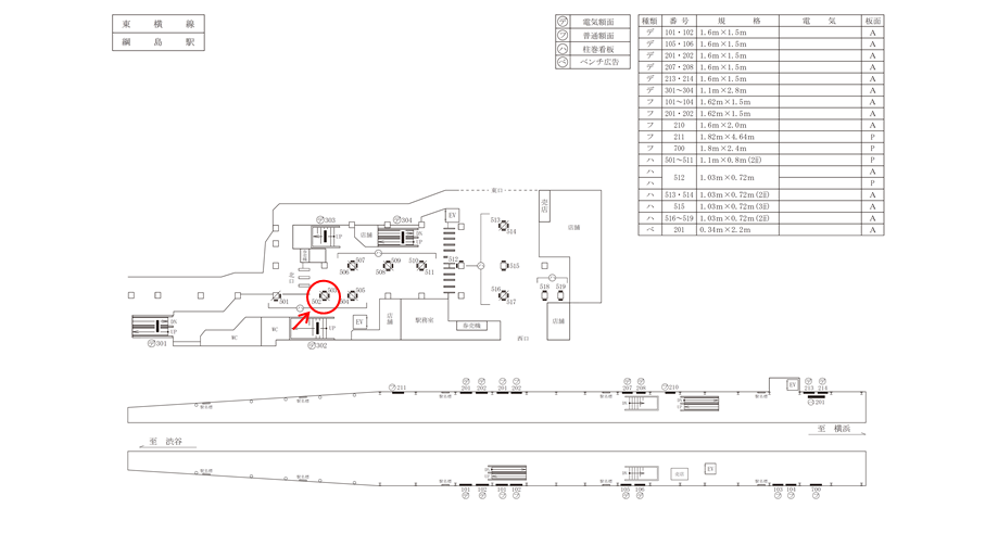 東急 東横線 綱島駅、コンコースの駅広告(駅看板)をご紹介いたします。
