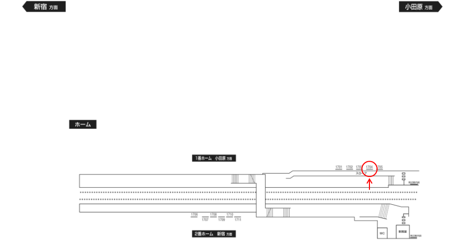 改札は二箇所、上りホームと下りホームにそれぞれあります。ホームは小田急線の上り下りが向き合う相対式です。