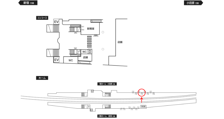 小田急 渋沢駅の階段の正面にある駅看板です。