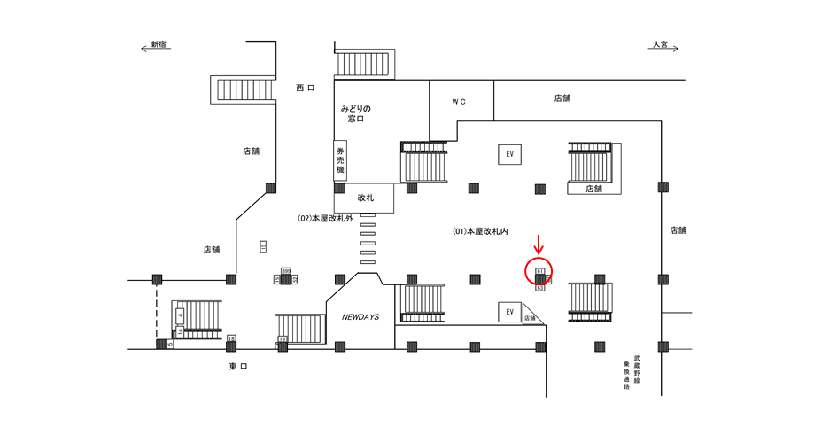 ○上り線側№1 線路前(JR埼京線 池袋・新宿・大崎・りんかい線方面) |