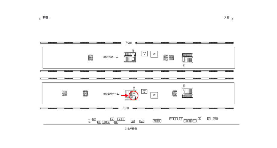 ○上り線側№17 線路前(JR埼京線 池袋・新宿・大崎・りんかい線方面) |