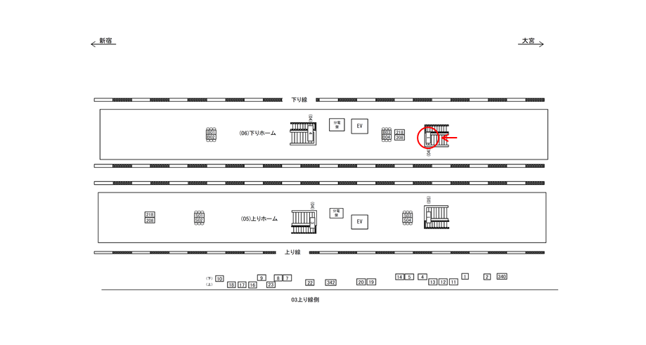 ○上り線側№17 線路前(JR埼京線 池袋・新宿・大崎・りんかい線方面) |