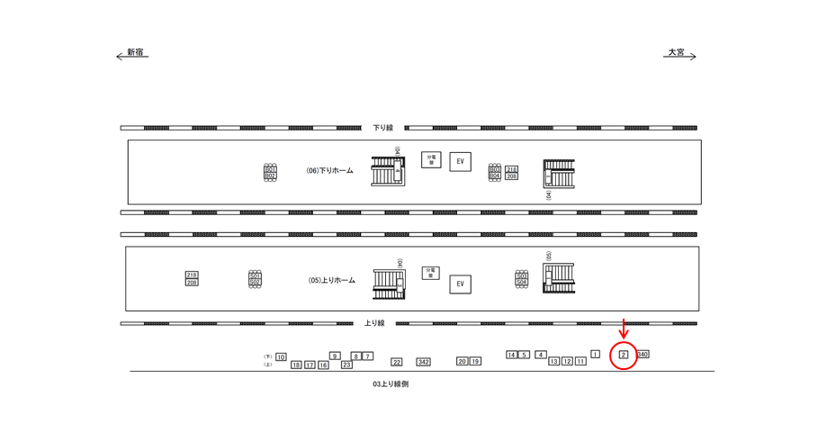 ○上り線側№22 線路前(JR埼京線 池袋・新宿・大崎・りんかい線 新木場方面) |