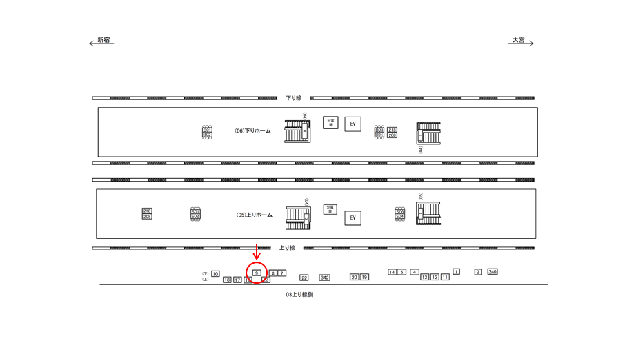 ○上り線側№19 線路前(JR埼京線 池袋・新宿・大崎・りんかい線方面) |