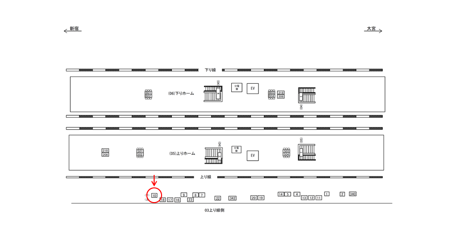 ○上り線側№17 線路前(JR埼京線 池袋・新宿・大崎・りんかい線方面) |