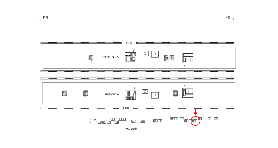 ○上り線側№17 線路前(JR埼京線 池袋・新宿・大崎・りんかい線方面) |