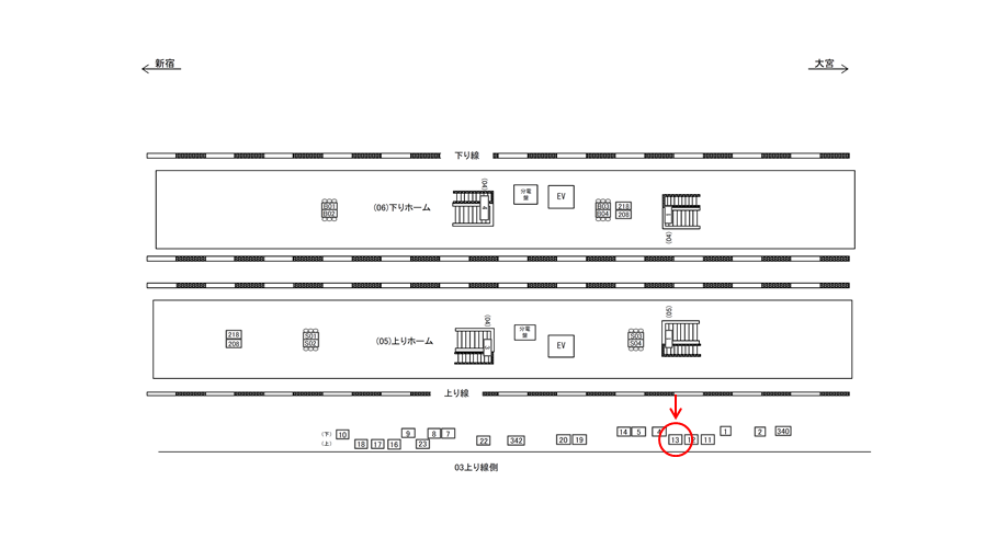 ○上り線側№17 線路前(JR埼京線 池袋・新宿・大崎・りんかい線方面) |