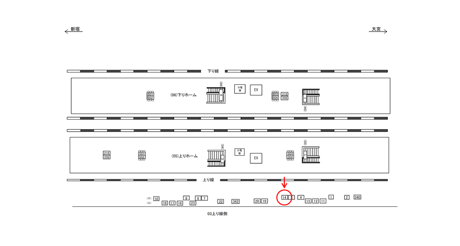 線路前(JR埼京線 池袋・新宿・大崎・りんかい線 新木場方面)
