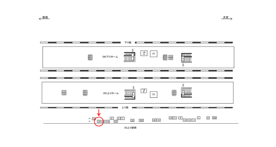 ○上り線側№17 線路前(JR埼京線 池袋・新宿・大崎・りんかい線方面) |