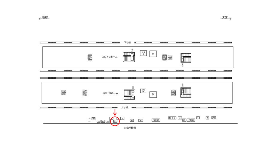 ○上り線側№17 線路前(JR埼京線 池袋・新宿・大崎・りんかい線方面) |
