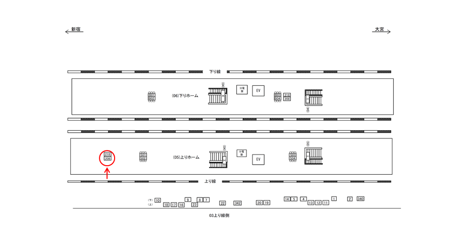 ○下りホーム№218 ホーム上(埼京線 大宮・川越方面) |