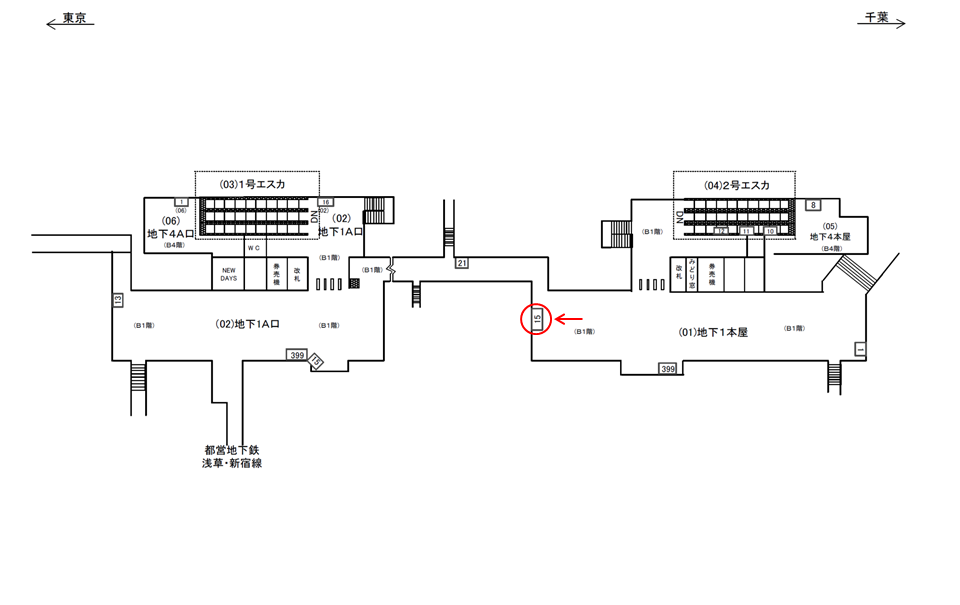 「JR 馬喰町駅 地下1本屋№15」は、改札外通路上に設置された広告看板です。