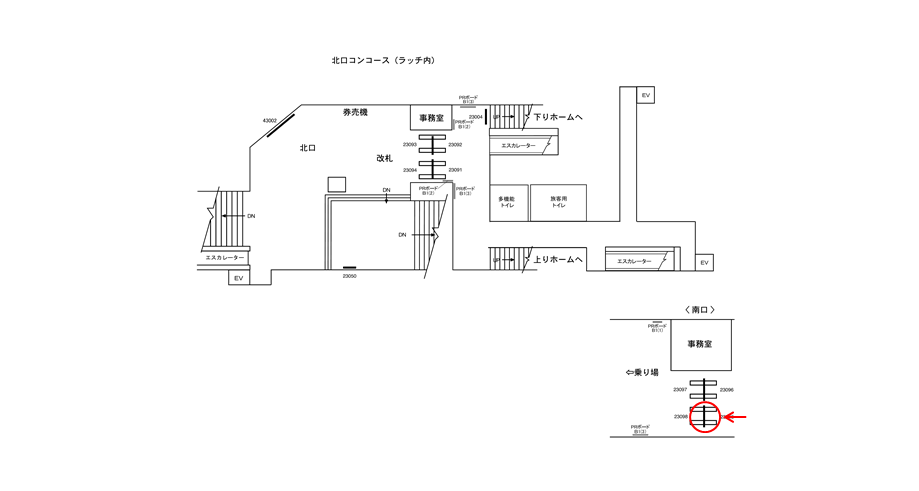 駅構内にあるこの駅看板は「これから電車に乗る方」に見てもらえます。いずれにしても駅を利用するタイミングで広告に接触します。移動中に見てもらえる駅構内の駅看板は、新馬場駅の周辺にある店舗施設の紹介や道案内に利用されています。特に駅の出口付近にある駅看板は、店舗までの距離が近く案内看板に適しています。
