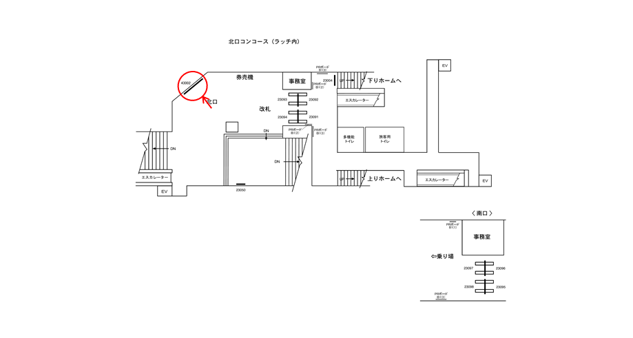 駅構内にある駅看板は「これから電車に乗る方」もしくは「駅を出る方」に見てもらえます。いずれにしても駅を利用するタイミングで広告に接触します。移動中に見てもらえる駅構内の駅看板は、新馬場駅の周辺にある店舗施設の紹介や道案内に利用されています。特に駅の出口付近にある駅看板は、店舗までの距離が近く案内看板に適しています。