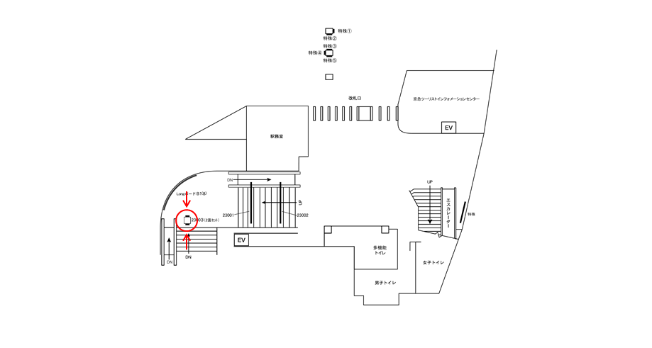 駅構内にある駅看板は「これから電車に乗る方」もしくは「駅を出る方」に見てもらえます。いずれにしても駅を利用するタイミングで広告に接触します。移動中に見てもらえる駅構内の駅看板は、品川駅の周辺にある店舗施設の紹介や道案内に利用されています。特に駅の出口付近にある駅看板は、店舗までの距離が近く案内看板に適しています。