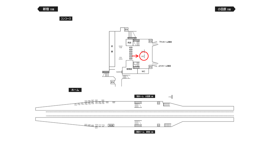 駅構内にある駅看板は「これから電車に乗る方」もしくは「駅を出る方」に見てもらえます。いずれにしても駅を利用するタイミングで広告に接触します。移動中に見てもらえる駅構内の駅看板は、愛甲石田駅の周辺にある店舗施設の紹介や道案内に利用されています。特に駅の出口付近にある駅看板は、店舗までの距離が近く案内看板に適しています。