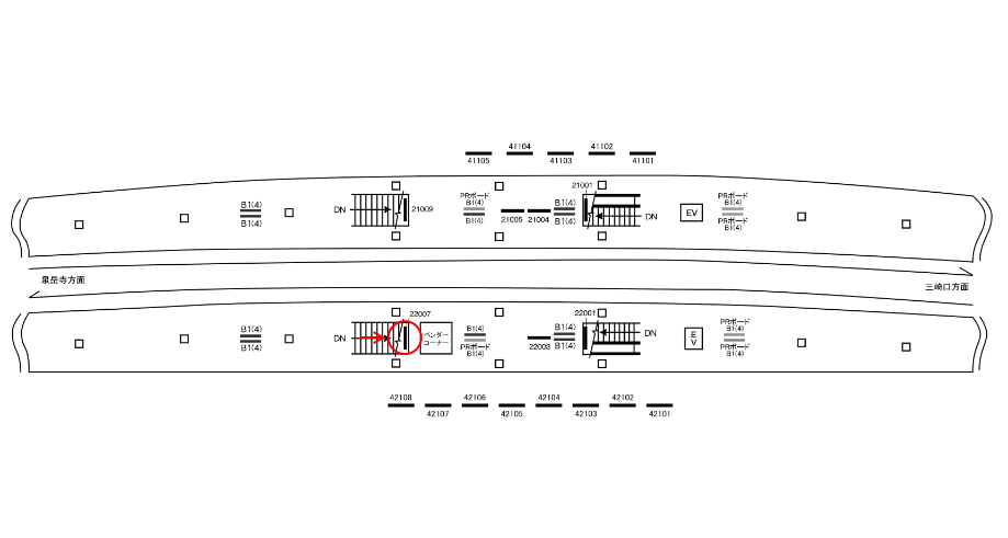 こちらの駅看板は「ホームで電車を待つ方」or「駅を出る方」に見てもらえます。階段付近は駅利用者が集中するエリアで目に留めてもらいやすい広告ロケーションです。サービス周知や企業広告などに適しており、日常的に駅を使う「平和島駅に生活基盤をもつ消費者」を対象とした広告にオススメです。